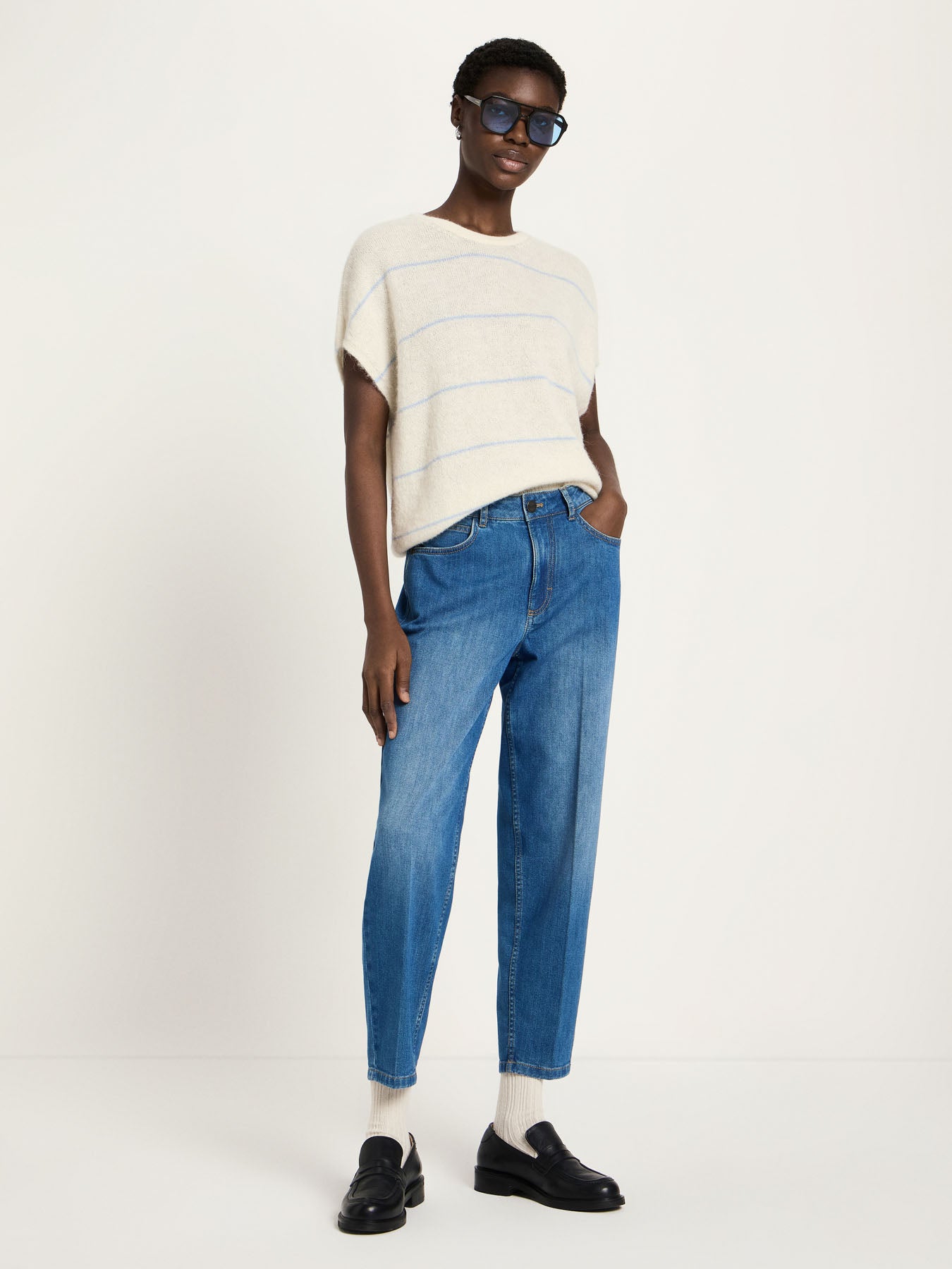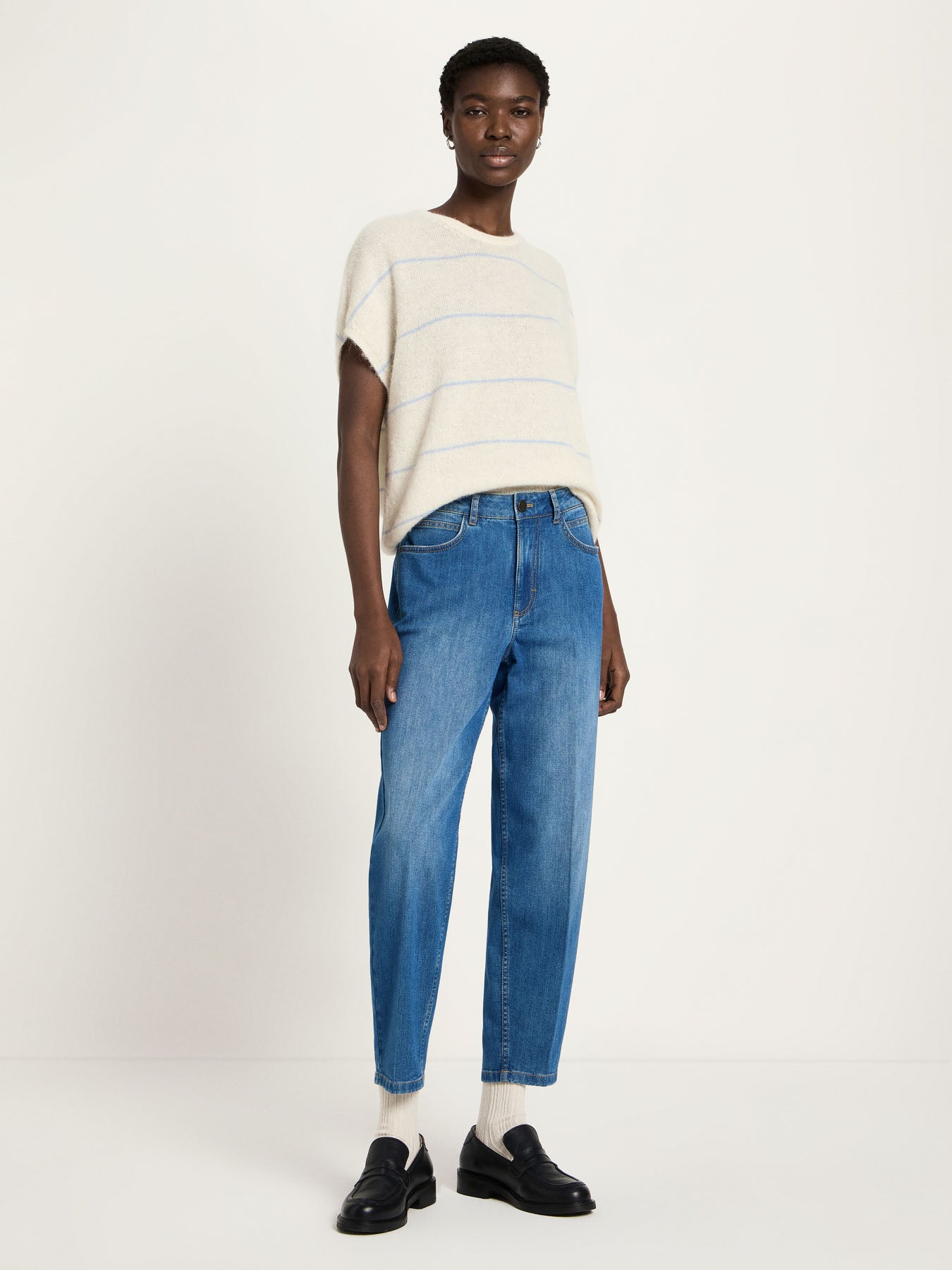 Unser Pullunder aus Schurwolle und Alpakawolle vereint Komfort, Stil und Nachhaltigkeit. Der kastige Schnitt mit kurzen Ärmeln und feinem Strick sorgt für eine moderne, lässige Silhouette. Ob über einem engen Langarmshirt oder solo getragen – der Pullunder bietet zahlreiche Kombinationsmöglichkeiten und begleitet uns stilvoll durch die Saison. Das weiche Material schmiegt sich angenehm an und sorgt für ein natürliches Tragegefühl.