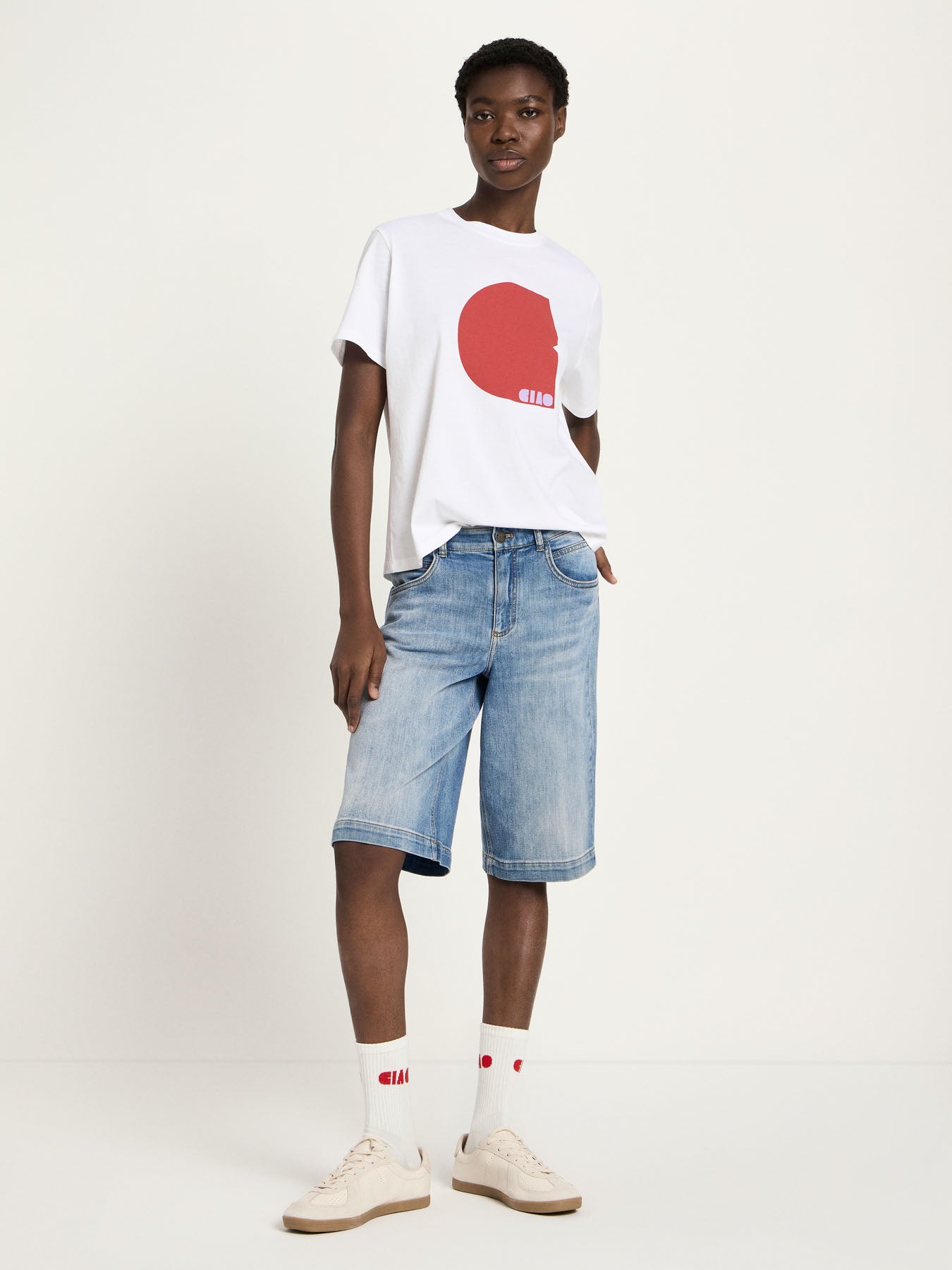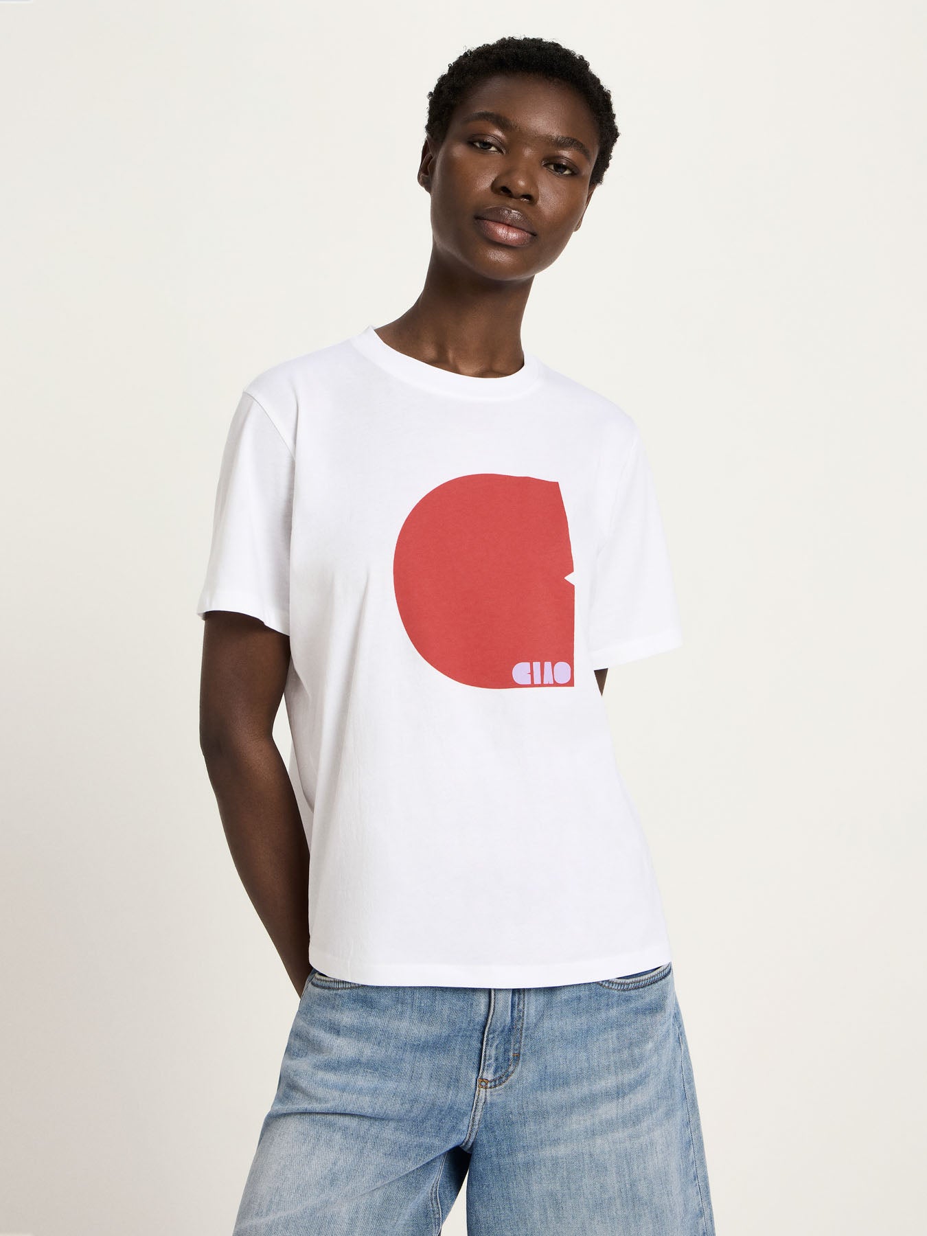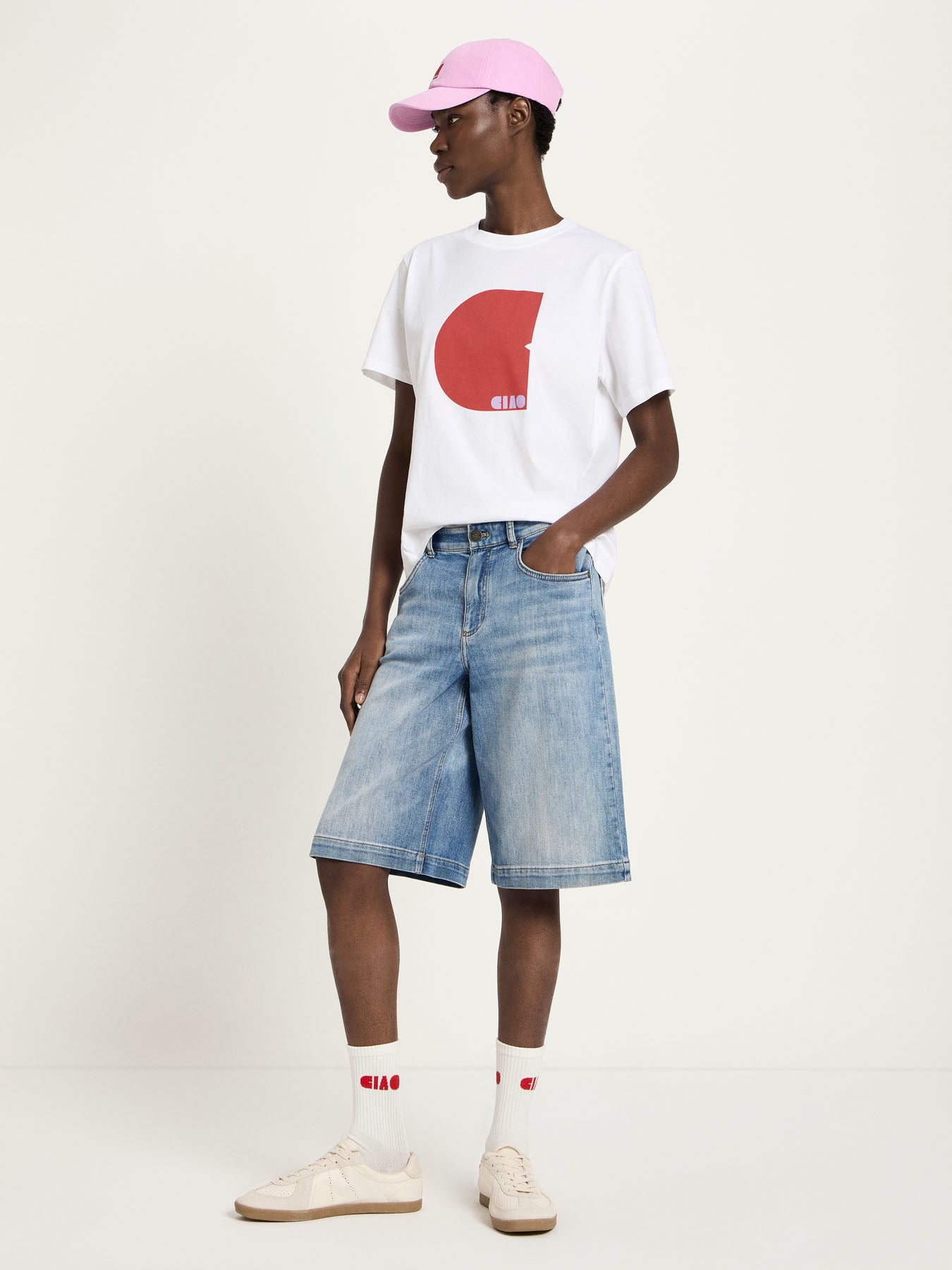 Dieses Statementshirt aus hochwertiger Bio-Baumwolle setzt mit seinem klaren, grafischen Print einen frischen Akzent. Das reduzierte Design wird durch den modernen Schriftzug stilvoll ergänzt und verleiht dem Shirt einen lässigen Look. Die angenehm weiche, atmungsaktive Qualität sorgt für hohen Tragekomfort und macht das Shirt zum vielseitigen Everyday-Piece – solo getragen oder unter Blazer, Jacke oder Strick.