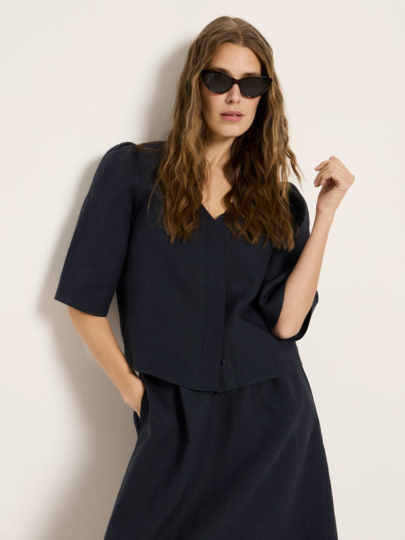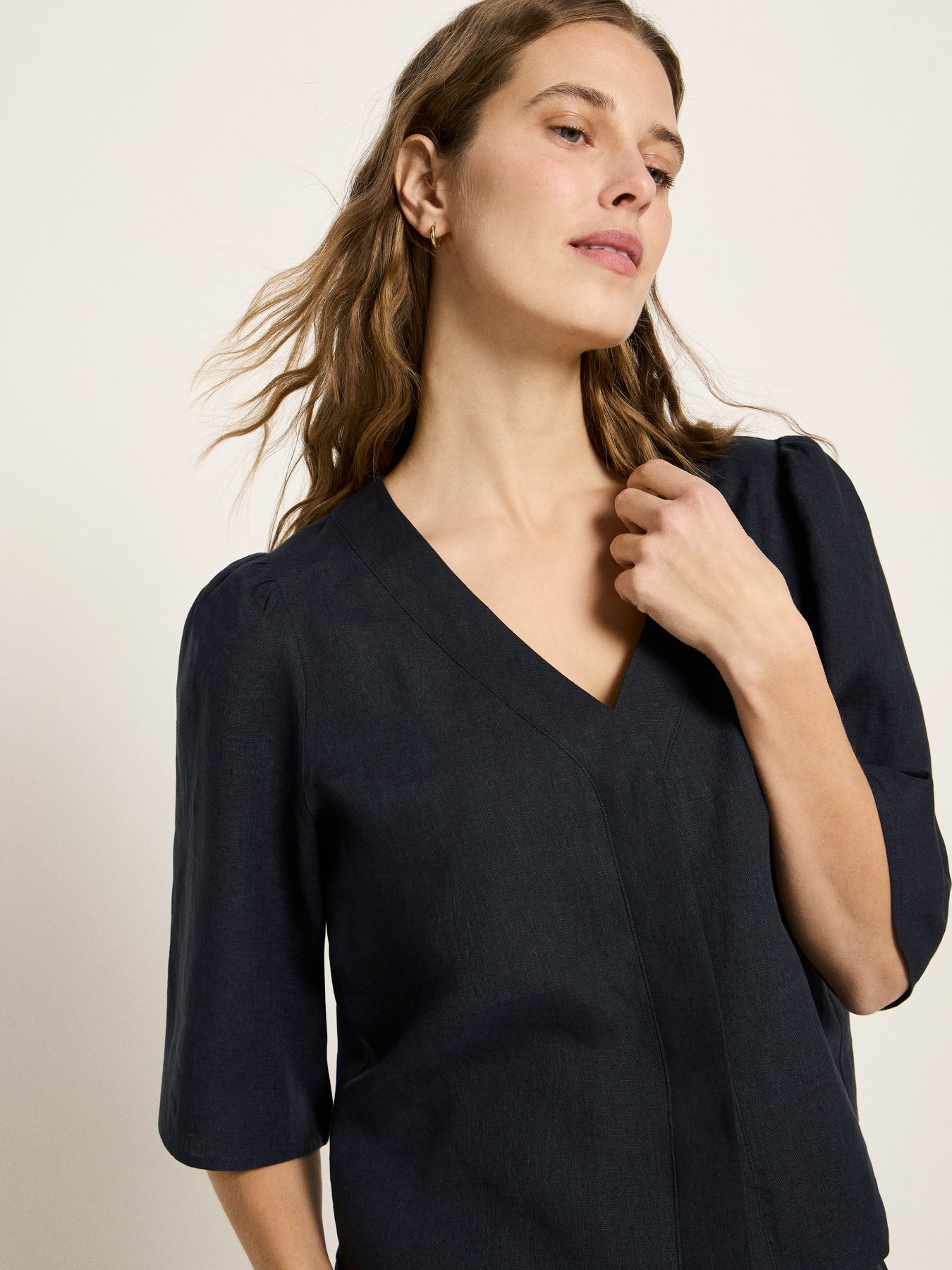 Leicht, luftig und zeitlos: Unsere 3/4-Arm Bluse aus 100% GOTS-zertifiziertem Bio-Leinen ist ein unkompliziertes Sommer-Essential. Leinen fühlt sich angenehm kühl auf der Haut an, ist atmungsaktiv und macht die Bluse zur perfekten Wahl für warme Tage – im Alltag, im Office oder im Urlaub. Der cleane Schnitt mit V-Ausschnitt und 3/4-Ärmeln sorgt für eine feminine Silhouette und lässt sich vielseitig stylen: zur Denim, zur weiten Stoffhose oder als Set mit passenden Leinen-Shorts.