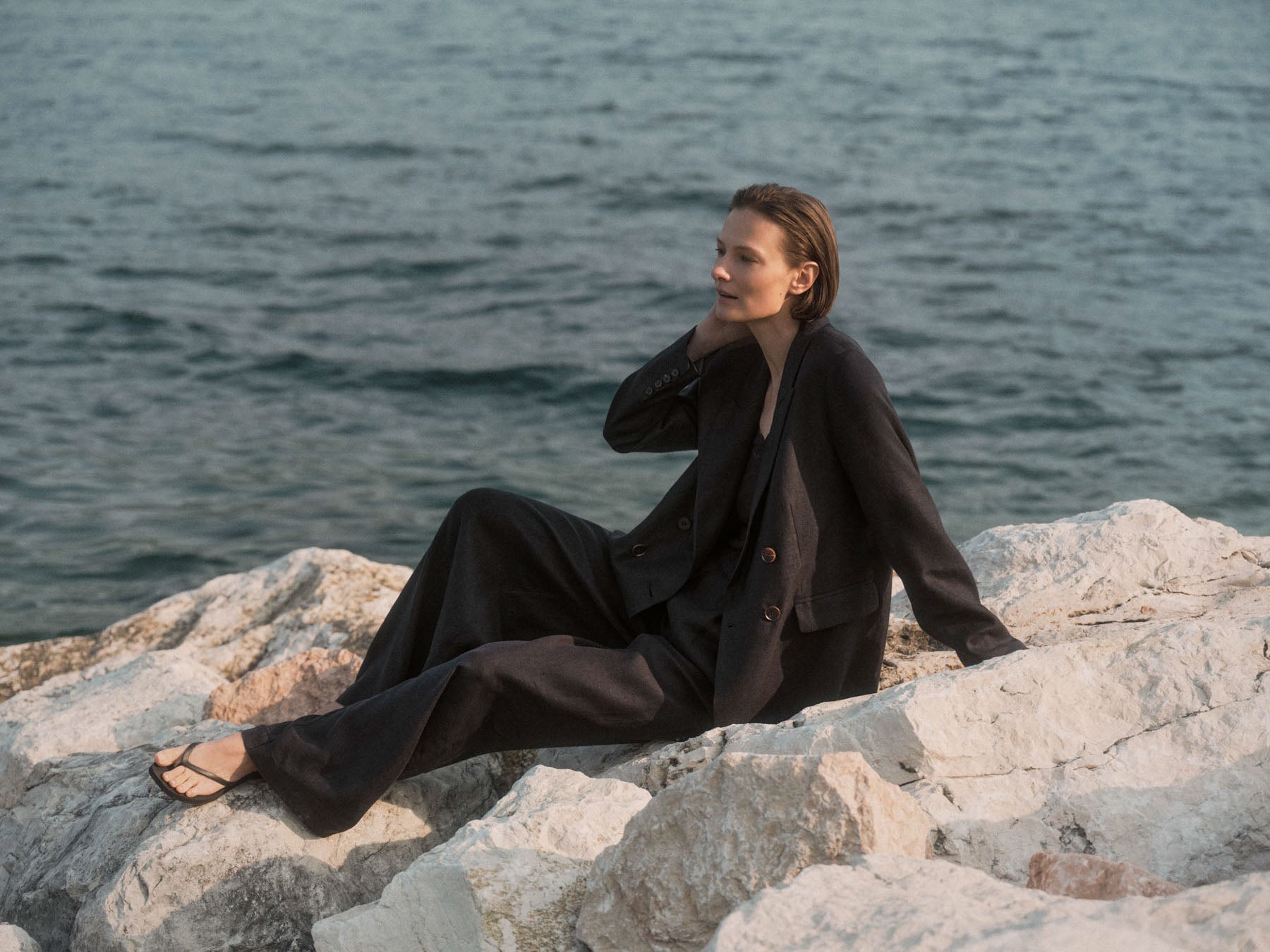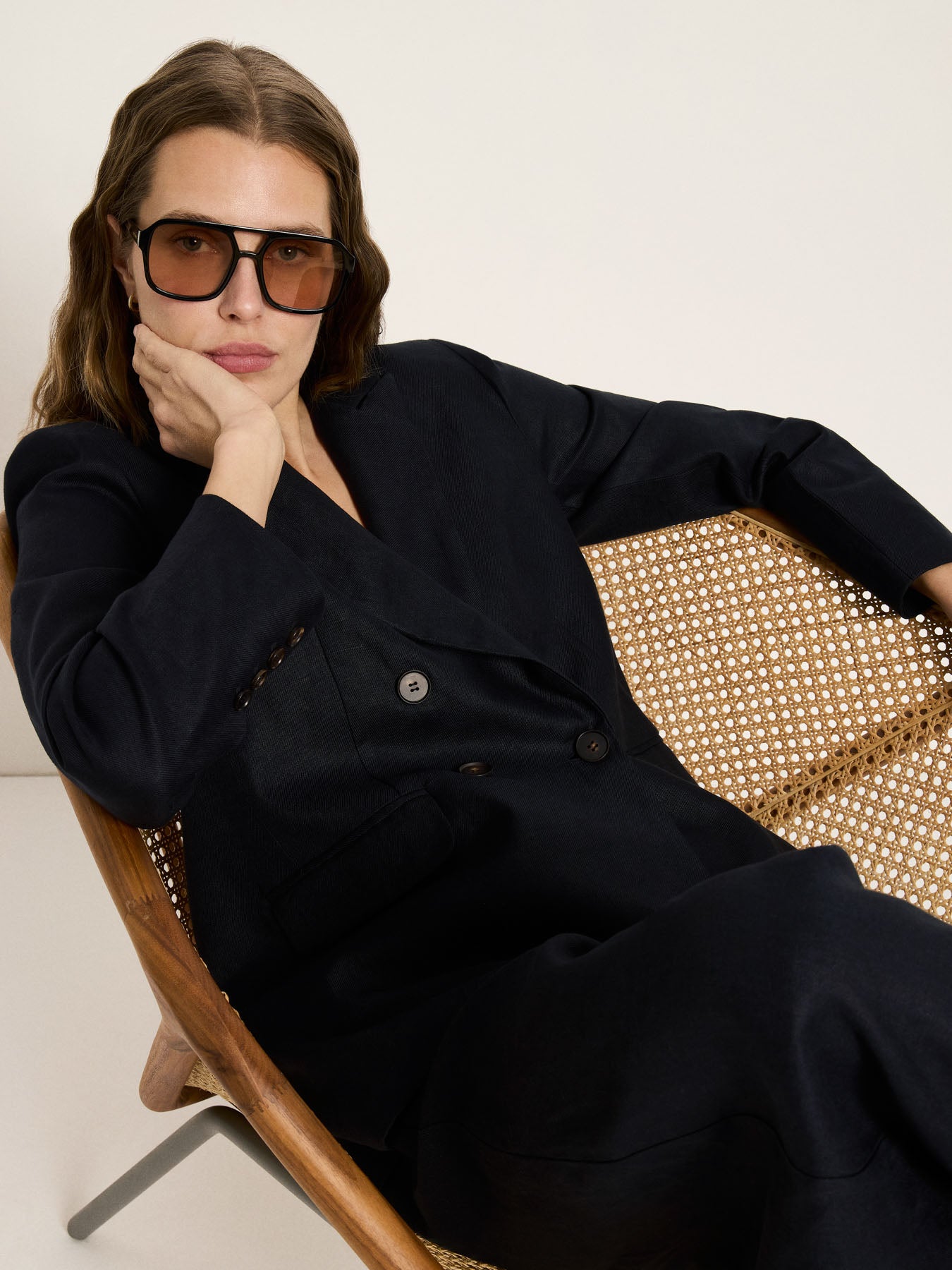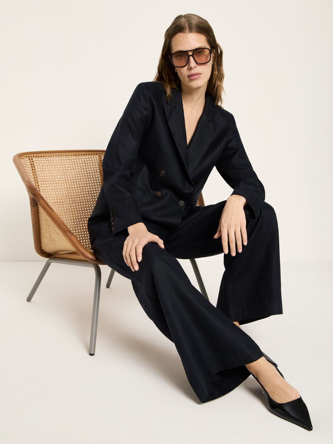 Zeitlos, modern und verantwortungsvoll gefertigt: Dieser Blazer aus Bio-Leinen ist ein stilvolles Essential für jede Garderobe. Mit seiner klaren Linienführung und dem entspannten, eleganten Schnitt verbindet er feminine Silhouette mit natürlichem Tragekomfort – ideal für warme Tage und Übergangslooks. Bio-Leinen ist nicht nur angenehm atmungsaktiv, sondern auch eine bewusste Wahl: Die Naturfaser überzeugt durch ihre Langlebigkeit, wirkt temperaturausgleichend und wird mit jeder Saison schöner. Der Blazer lässt sich vielseitig stylen – als smarter Look zu Stoffhose oder Rock, lässig über einem Kleid oder als stilvoller Kontrast zu Denim.