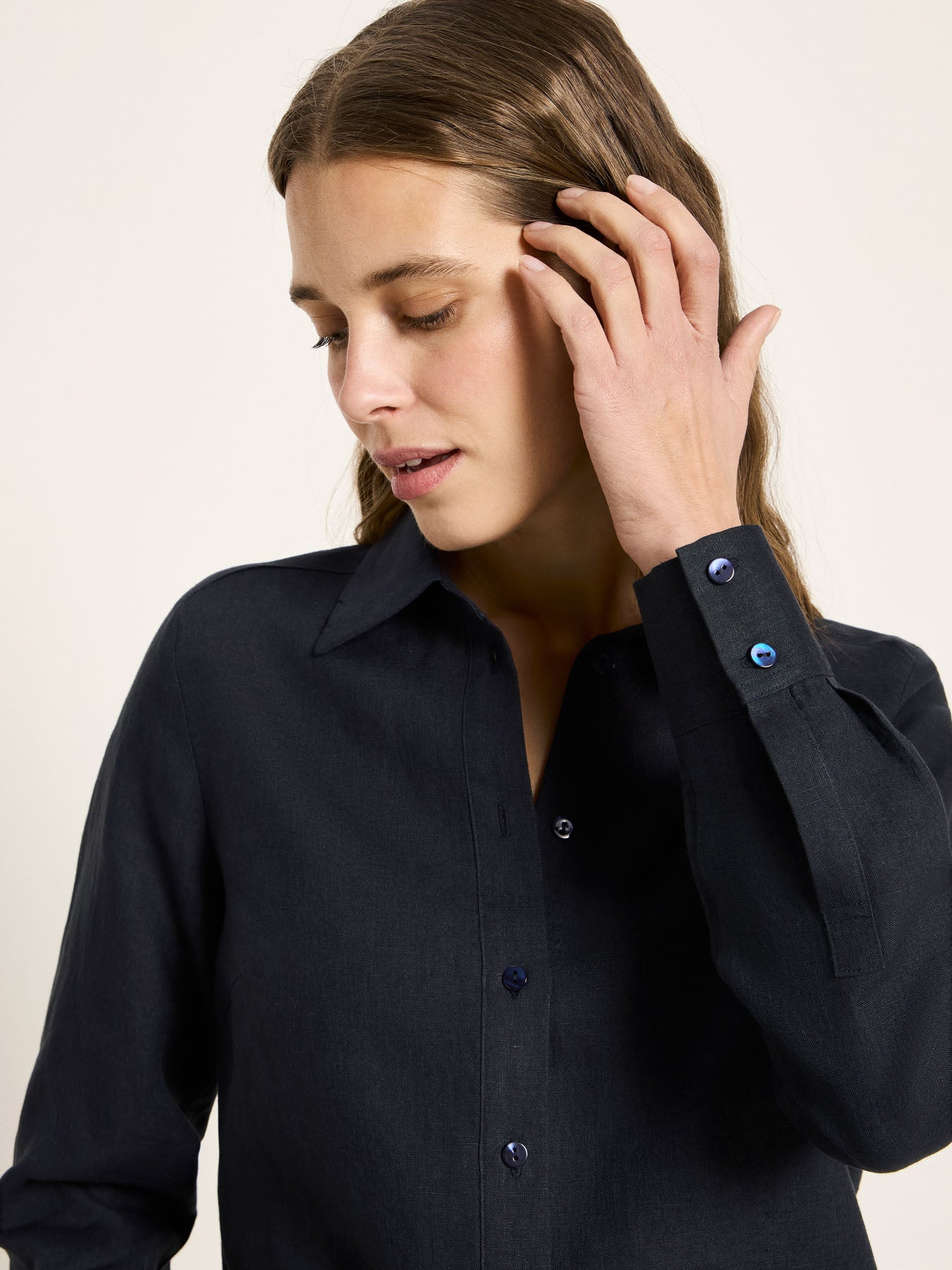 Ein Klassiker, neu gedacht: Unsere Hemdbluse aus 100% GOTS-zertifiziertem Bio-Leinen verbindet klare Linien mit natürlichem Tragekomfort. Leinen ist ideal für warme Tage – atmungsaktiv, temperaturausgleichend und angenehm leicht auf der Haut. Gleichzeitig wirkt die Hemdbluse durch Kragen und Knopfleiste immer stilvoll. Der zeitlose Schnitt macht sie zu einem vielseitigen Essential für jede Saison: Im Sommer solo, im Übergang offen über einem Top oder im Layering unter Blazer und Strick. Ob zur Jeans, zur Stoffhose oder zum Rock – diese Bluse lässt sich mühelos kombinieren.