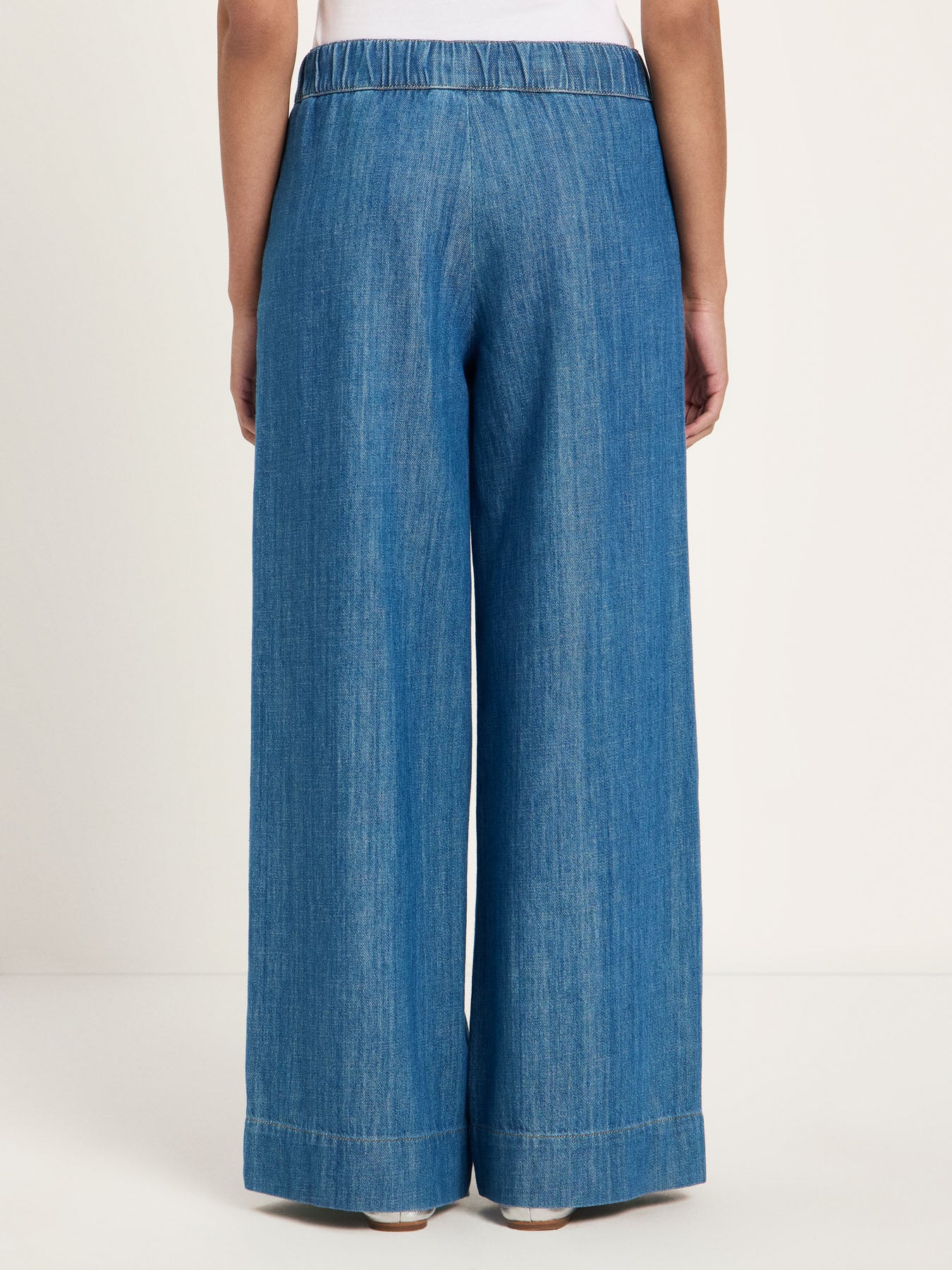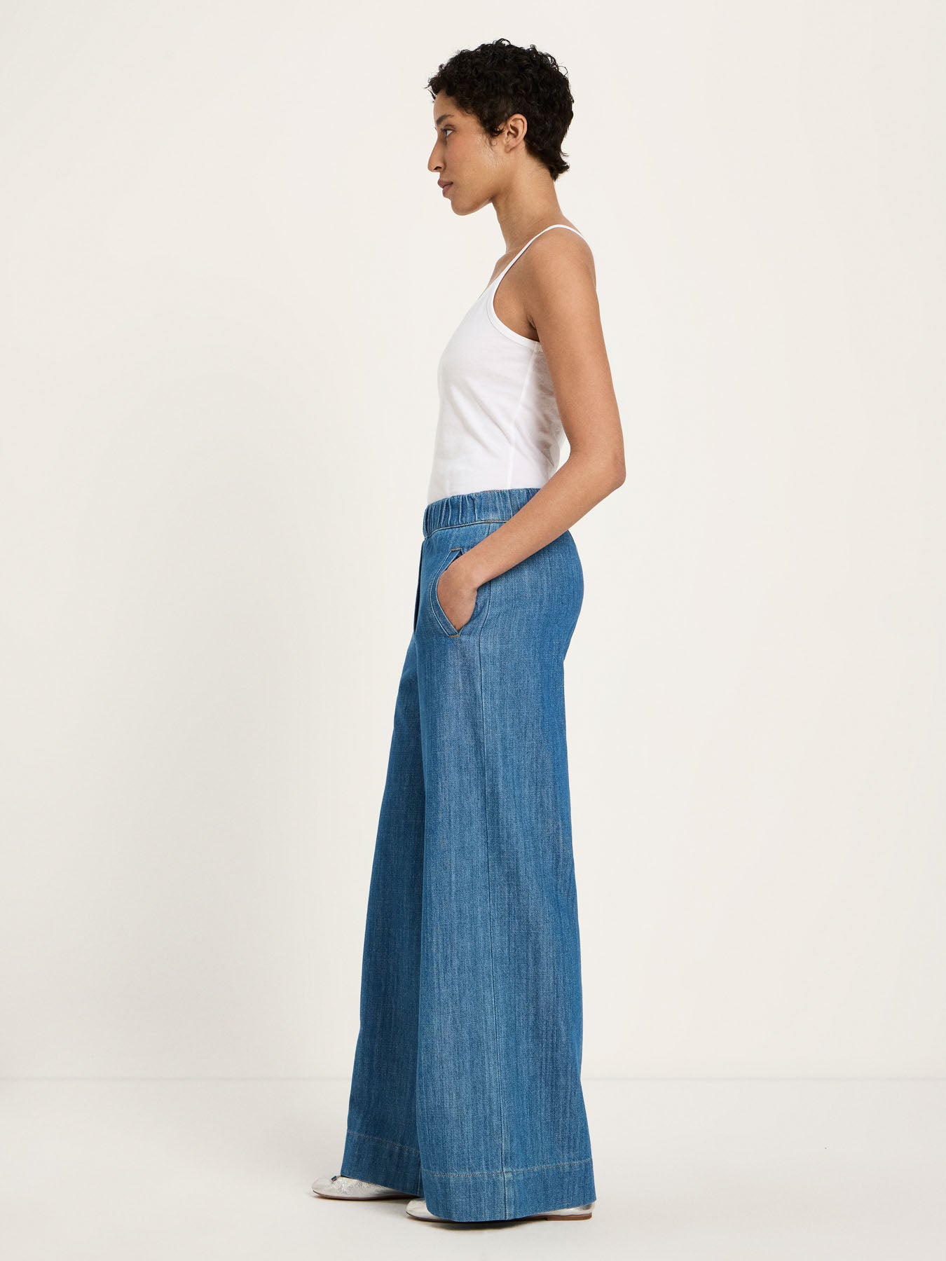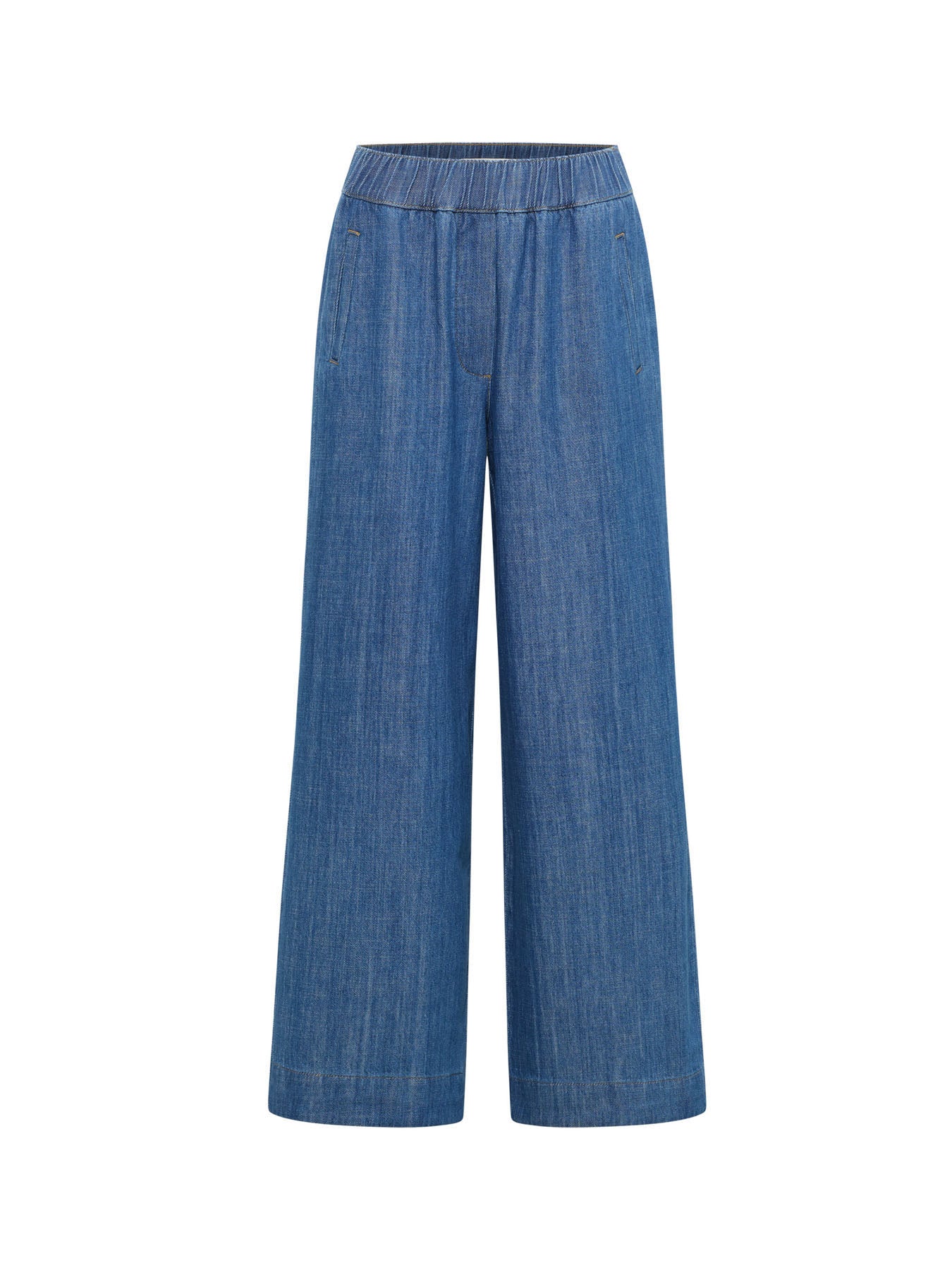 Diese Jeans mit Gummibund aus Bio-Baumwolle verbindet den authentischen Denim-Look mit maximalem Komfort. Der elastische Bund sorgt für ein angenehmes Tragegefühl und macht die Jeans zum perfekten Begleiter für lange Tage, Reisen oder unkomplizierte Alltagslooks. Gleichzeitig bleibt die Silhouette modern und clean – mit einem entspannten, leicht weiten Bein für eine zeitgemäße Passform. Die hochwertige Bio-Baumwolle fühlt sich angenehm auf der Haut an und steht für eine verantwortungsvolle Materialwahl. In klassischem Denim-Blau lässt sich die Jeans vielseitig kombinieren: mit T-Shirt und Sneakern für einen minimalistischen Look, mit Bluse und Loafern für ein smartes Styling oder mit Strick und Sandalen für entspannte Übergangs-Outfits.