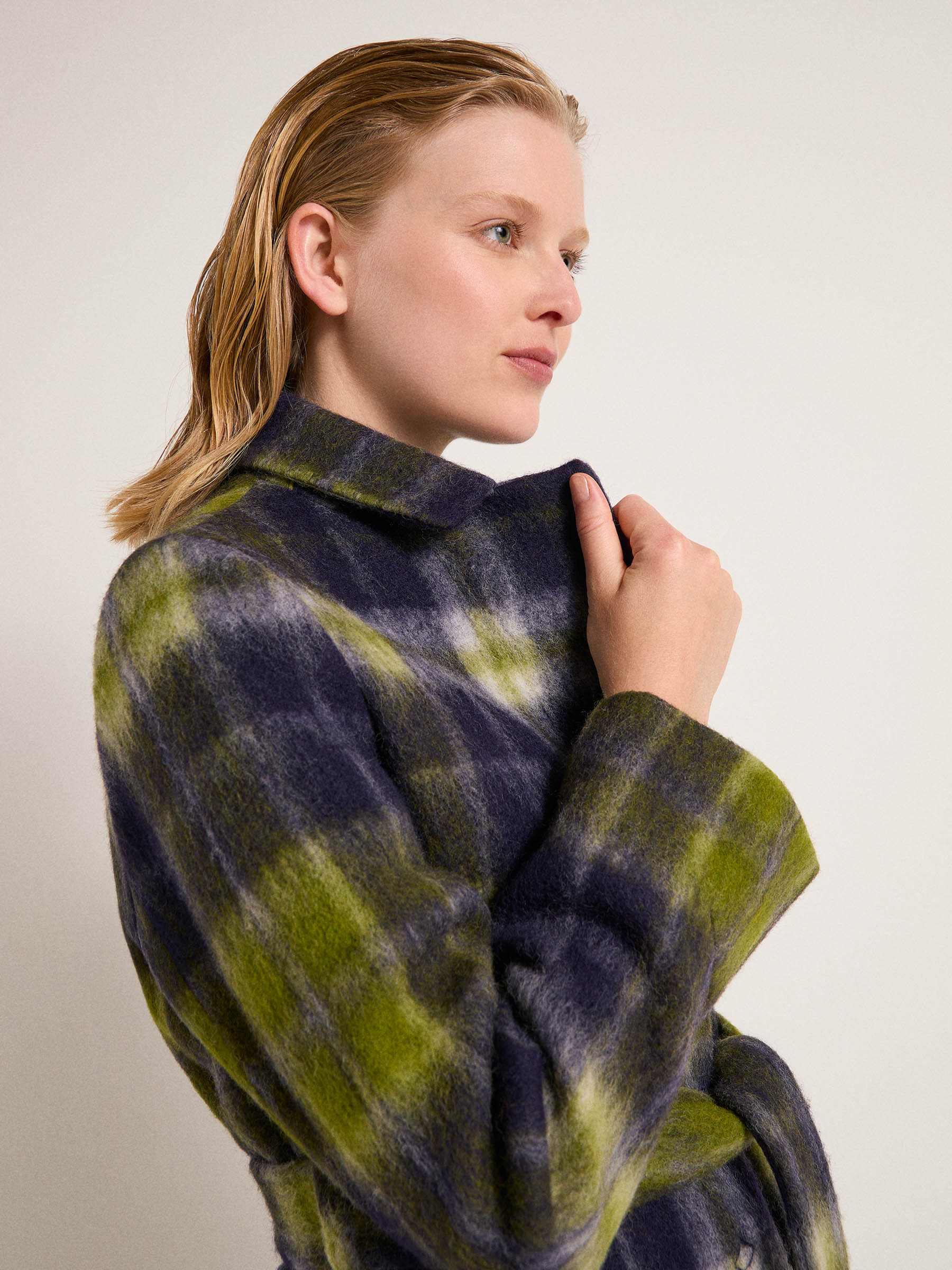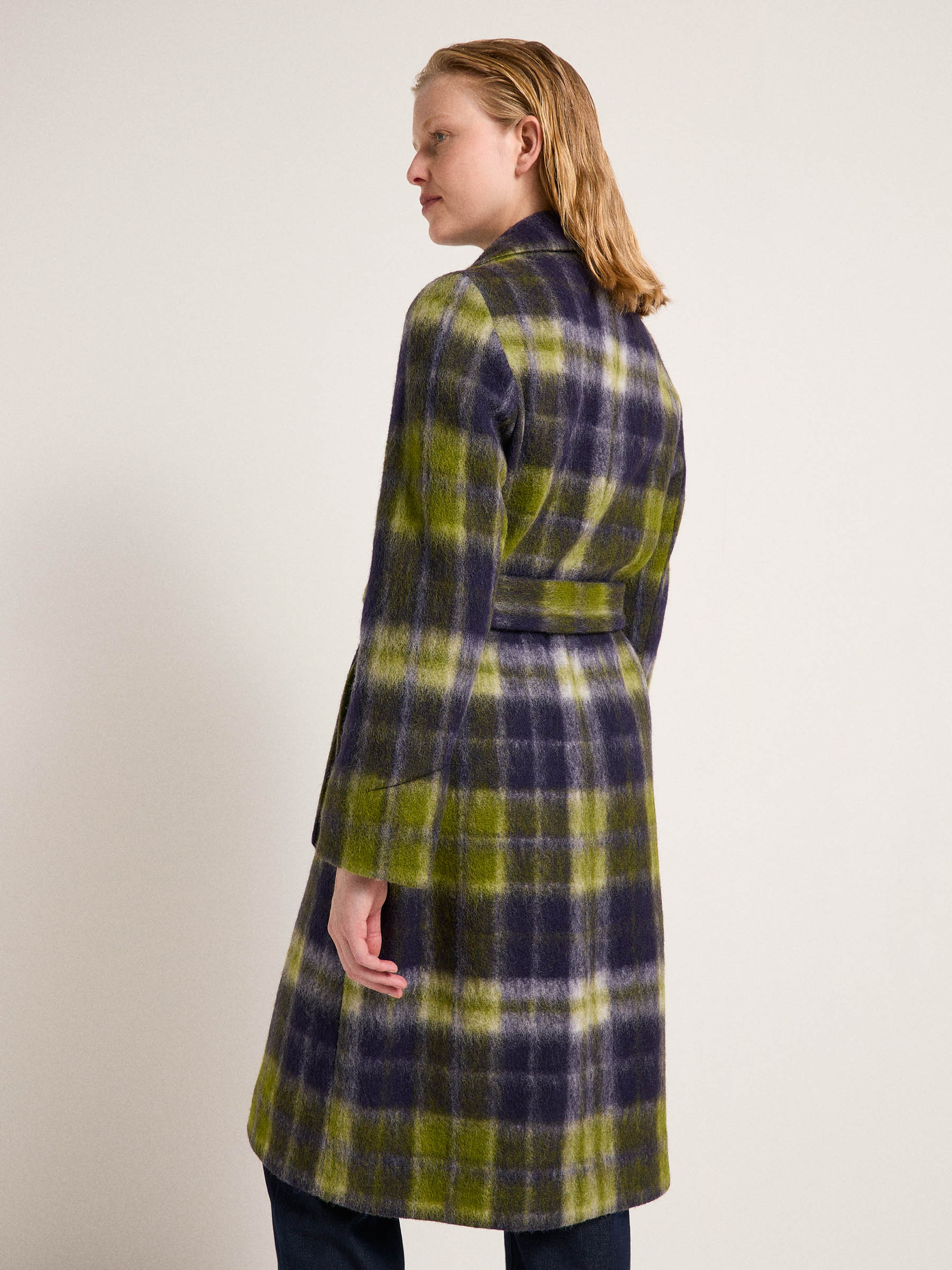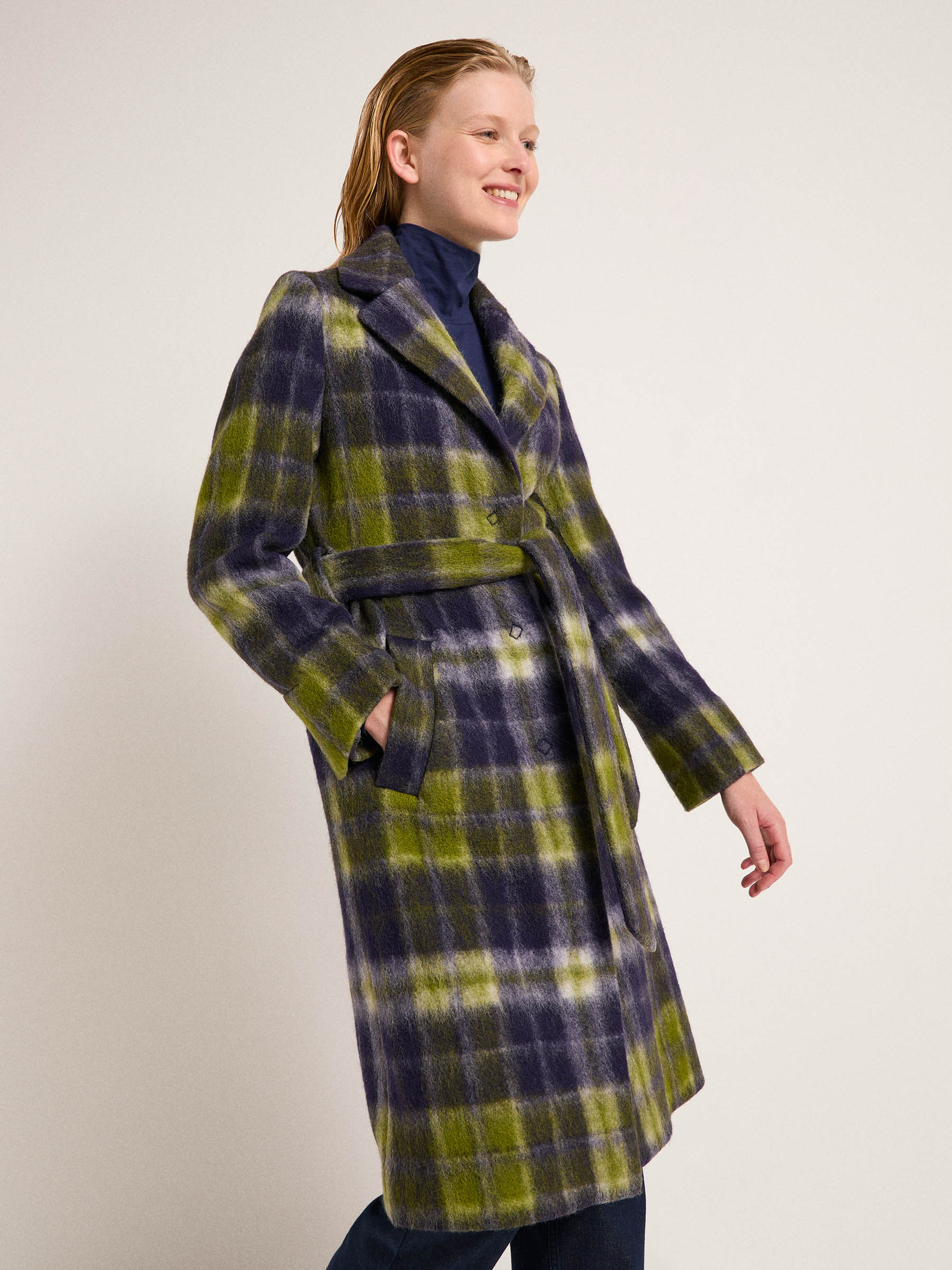 Edles Statement-Piece: der lange Karo-Mantel. Der natürliche Materialmix aus Bio-Schurwolle und Bio-Baumwolle ist angenehm weich, strapazierfähig und ideal auch für kühlere Tage geeignet. Die haarige Haptik, die verdeckte Knöpfung aus natürlichen Horn-Druckknöpfen, der hohe Revers-Kragen und der extra lange Bindegürtel unterstreichen die edle Optik. Seitliche Eingrifftaschen sind praktische Details. Der Mantel ist ungefüttert und perfekt für den Übergang geeignet.