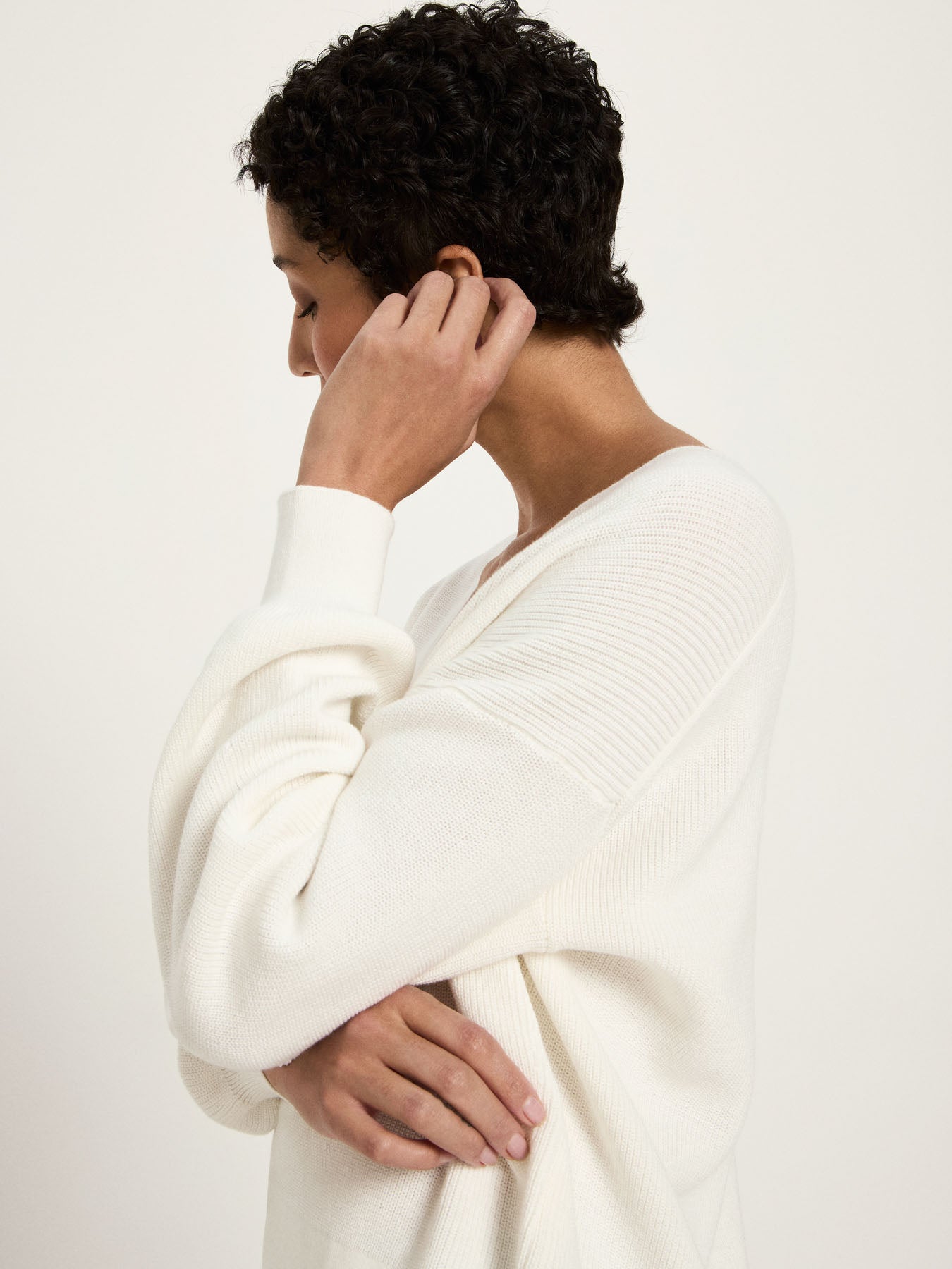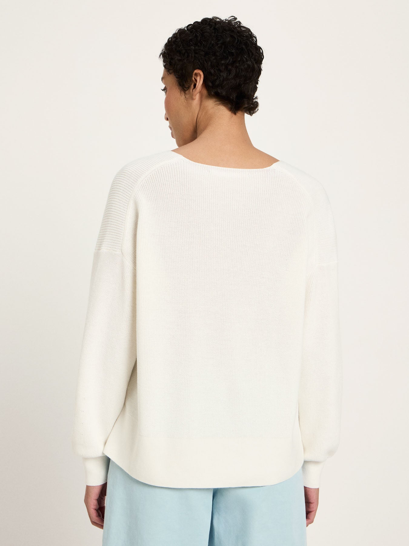 Ein echtes Essential für jede Garderobe: Unser Basic Pullover mit V-Ausschnitt aus Bio-Baumwolle ist ein zeitloser Klassiker, den man das ganze Jahr über tragen kann. Der V-Ausschnitt verleiht dem cleanen Design eine feminine Note, wirkt elegant und macht den Pullover vielseitig kombinierbar. Dank der atmungsaktiven Bio-Baumwolle fühlt sich das Material angenehm weich auf der Haut an und sorgt für ein ausgewogenes Tragegefühl – ideal für jede Saison.