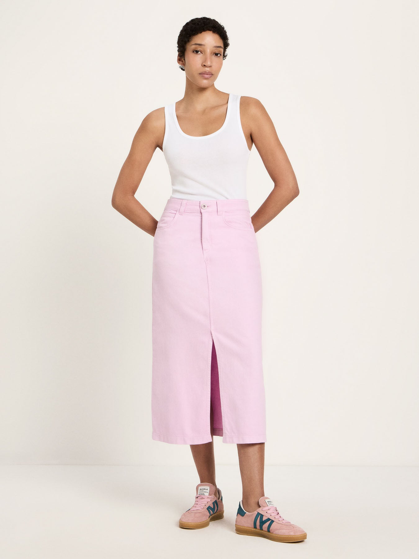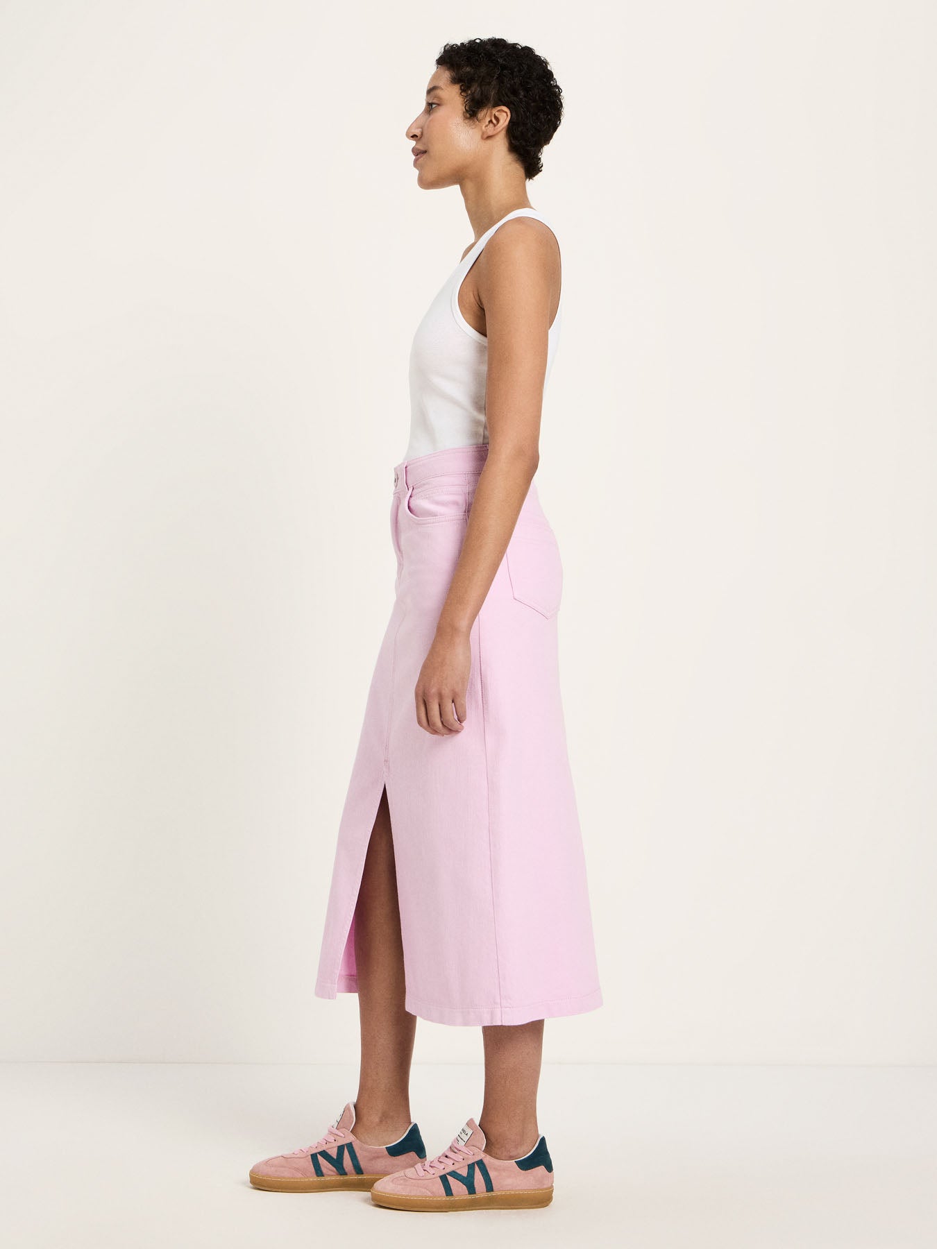 Dieser Rock mit Schlitz aus Bio-Baumwolle verbindet feminine Eleganz mit moderner Lässigkeit. Der cleane Schnitt sorgt für eine zeitlose Silhouette, während der Schlitz dem Look eine subtile Leichtigkeit und Bewegungsfreiheit verleiht – perfekt für warme Tage und stilvolle Übergangs-Outfits. Die hochwertige Bio-Baumwolle fühlt sich angenehm weich an und bietet ein natürliches Tragegefühl. Der Rock lässt sich vielseitig kombinieren: mit einem schlichten Top und Sandalen für einen minimalistischen Sommerlook oder mit Bluse, Strick und Blazer für ein modernes Office-Styling.